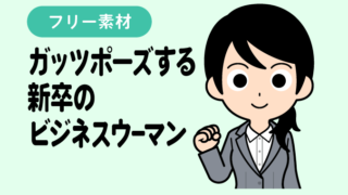 ガッツポーズする新卒のビジネスウーマン【無料イラスト】