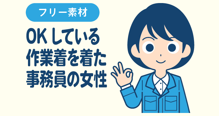 OKしている作業着を着た事務員の女性【無料イラスト】