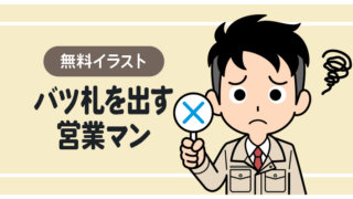 バツ札を持つ営業マン(上半身と全身イラスト)バツ札を持つ営業マンのイラストです。残念、不正解!