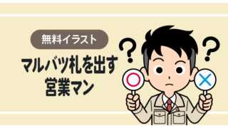 マルバツ札を持つ営業マン(上半身と全身イラスト)マルバツ札を持つ営業マンのイラストです。