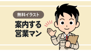 案内する営業マン(上半身と全身イラスト)バインダーを持って案内している営業マンのイラストです。