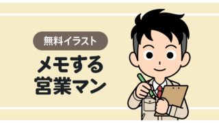 メモする営業マン(上半身と全身イラスト)メモする営業マンのイラストです。