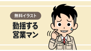 動揺する営業マン(上半身と全身イラスト)動揺して冷や汗をかいている営業マンのイラストです。ポリポリ。。。