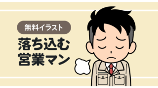 落ち込む営業マン(上半身と全身イラスト)営業マンがため息ついて落ち込んでいるイラストです。