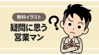 疑問に思う営業マン(上半身と全身イラスト)首をかしげて疑問に思う営業マンのイラストです。