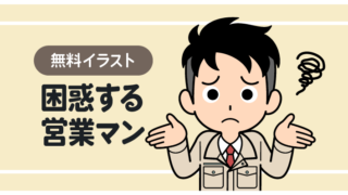 困惑する営業マン(上半身と全身イラスト)困惑する営業マンのイラストです。お手上げです〜。
