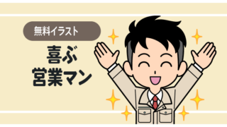 喜ぶ営業マン(上半身と全身イラスト)営業マンの男性が喜んでいるイラストです。