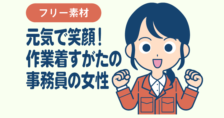元気で笑顔!作業着姿の事務員の女性【無料イラスト】