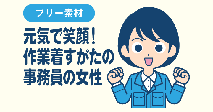 元気で笑顔!作業着姿の事務員の女性【無料イラスト】