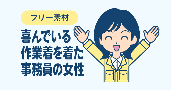 喜んでいる作業着を着た事務員の女性【無料イラスト】