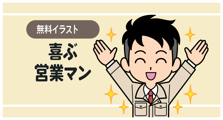 喜ぶ営業マン(上半身と全身イラスト)営業マンの男性が喜んでいるイラストです。
