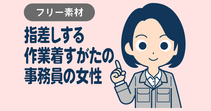 指差しする作業着すがたの事務員の女性【無料イラスト】