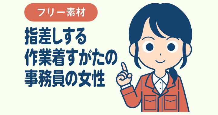 指差しする作業着姿の事務員の女性【無料イラスト】