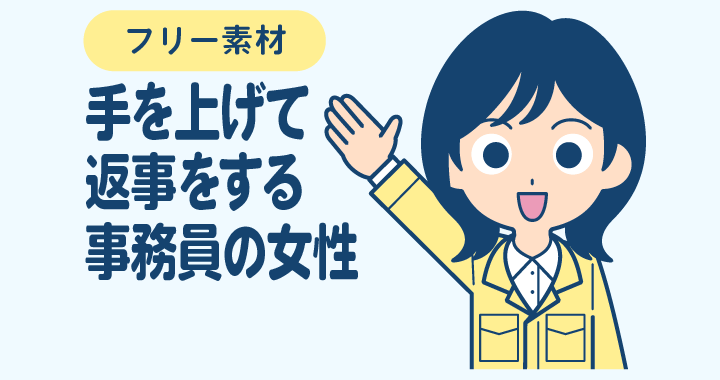 手を上げて返事をする事務員の女性B(上半身)手を上げて返事をする事務員の女性B(全身&スカート)手を上げて返事をする事務員の女性B(全身&作業ズボン)手を上げて返事をする事務員の女性B(全身&スカート)その他【色・デザイン違い】こちらのイラ...