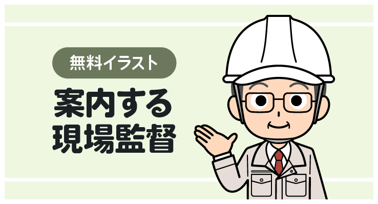 案内する現場監督(上半身と全身イラスト)案内する中年の現場監督のイラストです。