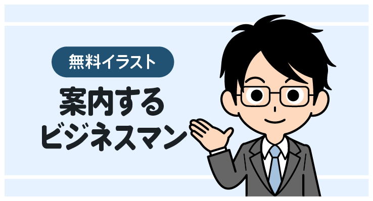 案内する新卒のビジネスマン(上半身と全身イラスト)案内する新卒のビジネスマンのイラストです。こちらです!
