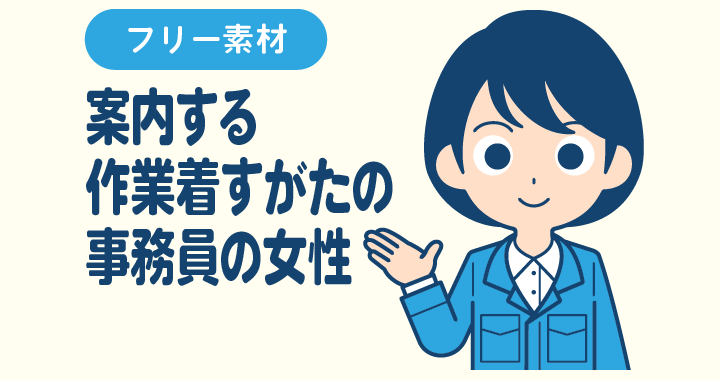 案内する作業着すがたの事務員の女性【無料イラスト】