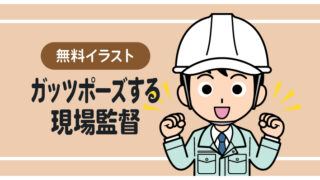 ガッツポーズする現場監督(上半身と全身イラスト)ガッツポーズする現場監督のイラストです。