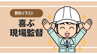 喜ぶ現場監督(上半身と全身イラスト)両手を上げて喜んでいる現場監督のイラストです。キラキラリン!