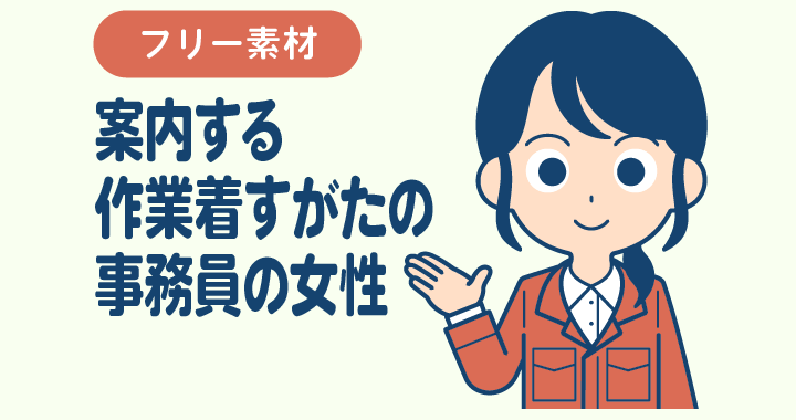 案内する作業着すがたの事務員の女性【無料イラスト】