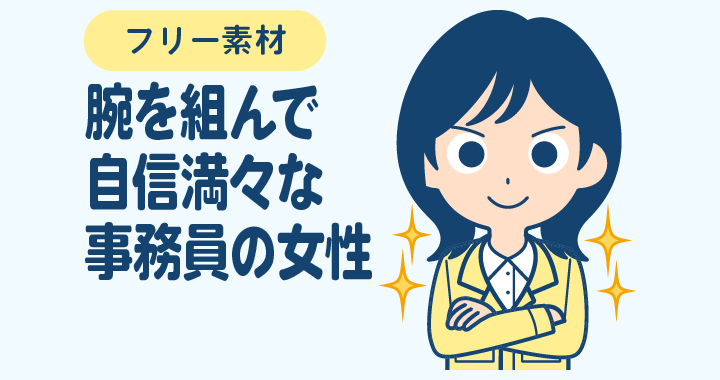 腕を組んで自信満々な事務員の女性【無料イラスト】