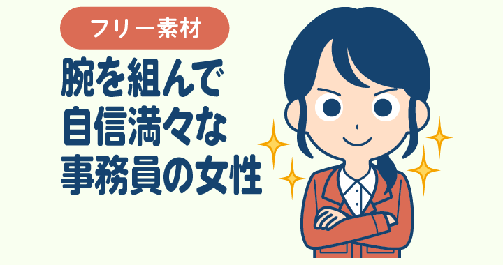 腕を組んで自信満々な事務員の女性【無料イラスト】