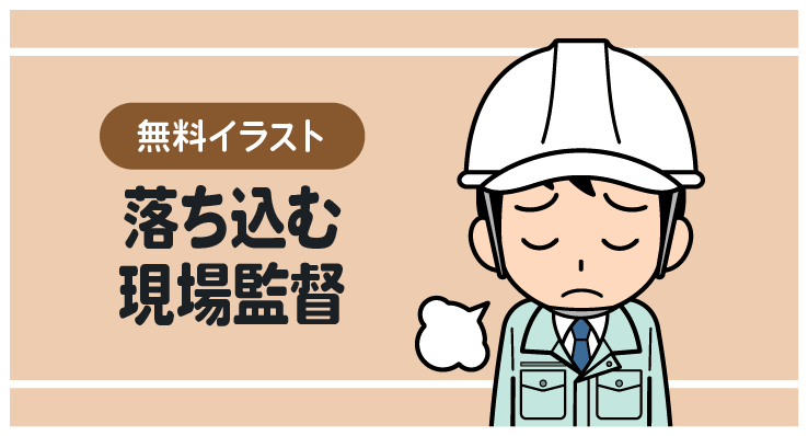 落ち込む現場監督(上半身と全身イラスト)落ち込んでいる現場監督のイラストです。しょんぼり。。。