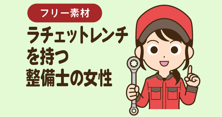 ラチェットレンチを持つ整備士の女性のイラスト【無料イラスト】