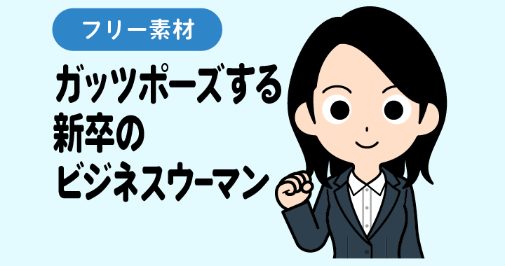 ガッツポーズする新卒のビジネスウーマン【無料イラスト】