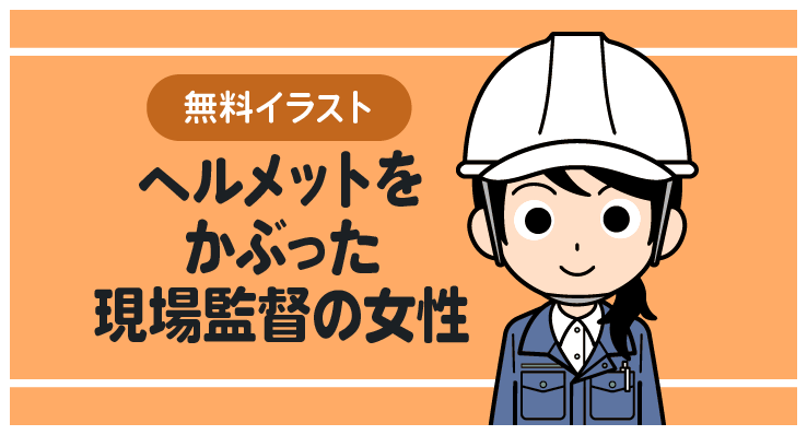 ヘルメットをかぶった現場監督の女性のイラスト【上半身・ロングヘアー】