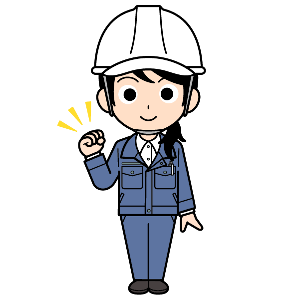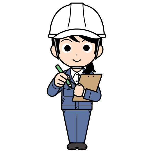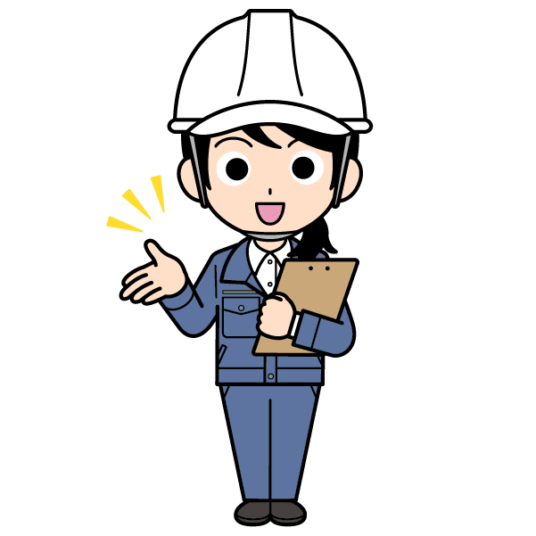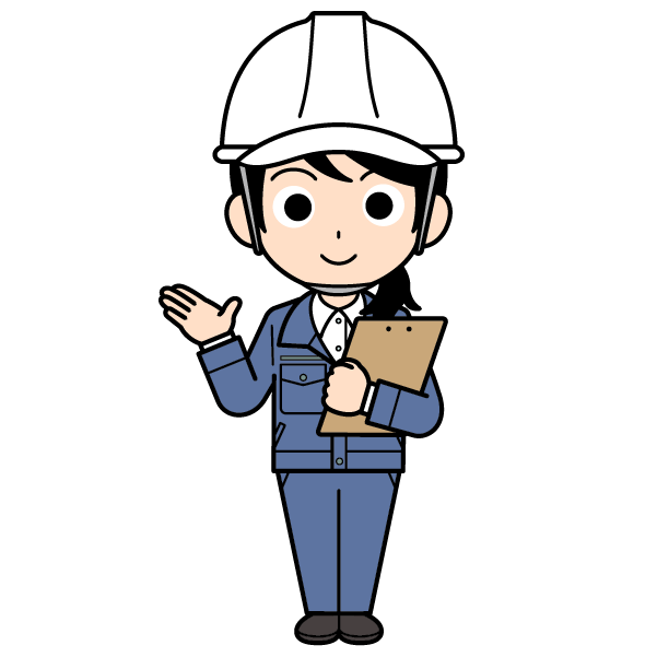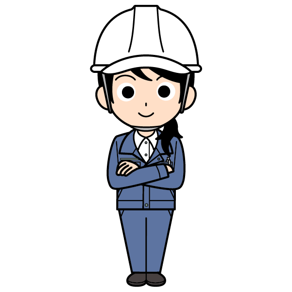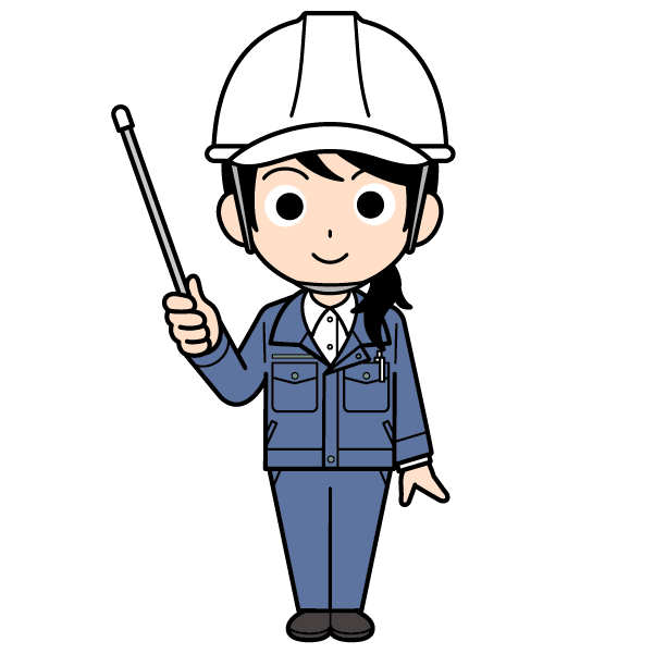 ヘルメットをかぶった現場監督の女性のイラスト【全身・ロングヘアー】
